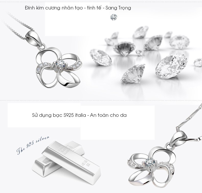 Dây Chuyền Bạc Nữ Sino Mặt Đính Đá Pha Lê Cao Cấp SIêu Đẹp